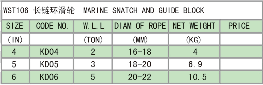 • 產(chǎn)品描述:長鏈環(huán)滑輪,也稱烏魚滑車,導(dǎo)向滑輪,可以用在鋼絲繩起重方面,也可以用在船上,是一個(gè)用途比較廣泛的產(chǎn)品。我司尺寸為4寸,5寸,6寸,拉力設(shè)計(jì)是2T,3T,5T,能滿足小拉力范圍要求的作業(yè)。該款產(chǎn)品為旋轉(zhuǎn)吊環(huán)式,也可以做成旋轉(zhuǎn)吊鉤式。