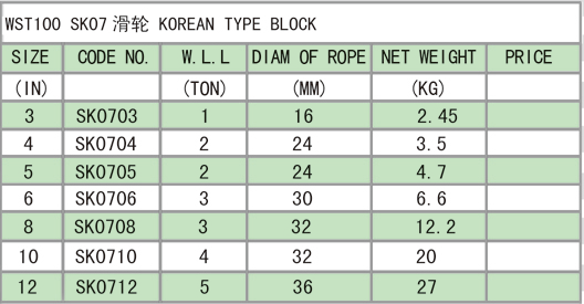 • 產(chǎn)品描述:該產(chǎn)品為雙開口單輪旋轉(zhuǎn)鉤式,區(qū)別于SK06,要的客戶很少,尺寸從三寸到十二寸,拉力是1T到5T,繩徑16MM到36MM,能比較全面的適用于小噸位的起重項(xiàng)目。