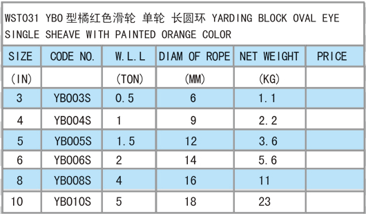 • 產(chǎn)品描述:這款滑輪是對應(yīng)于卸扣式重型滑輪的一款應(yīng)用相當(dāng)廣泛的輕型鋼繩用滑輪,可以開口,表面處理一般為噴塑,適用于起重鉆井開采等。質(zhì)量輕,拉力大,體積小。尺寸從3寸到8寸,拉力從0.5噸到4噸,繩徑從6MM到16MM,可以滿足小噸位作業(yè)的需求。