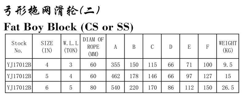 • 產(chǎn)品描述:弓體拖網(wǎng)滑輪是拖網(wǎng)滑輪里面比較特殊的一個產(chǎn)品,它的“大肚子“可收納纜繩。該產(chǎn)品有不銹鋼和碳鋼熱鍍鋅兩種可以很好的抵抗海水的腐蝕。產(chǎn)品尺寸是4寸,6寸和8寸,拉力是3T,5T和10T,可以滿足較多的需求。