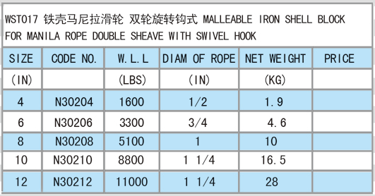 成華牌熱鍍鋅鐵殼馬尼拉雙輪旋轉(zhuǎn)鉤式滑輪