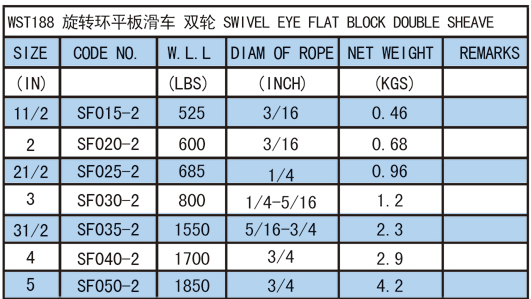 • 產(chǎn)品描述:該款滑輪有很多款式,有平板旋轉(zhuǎn)環(huán)的,旋轉(zhuǎn)鉤的,固定環(huán)的,也有平板平座可以固定的,尺寸小,靈活,從1-1/2”到5寸,拉力從525 LBS到1900 LBS,可以適用于很多小噸位的起重作業(yè)工作。于澳洲和美洲的牧場上,有廣泛應用。
